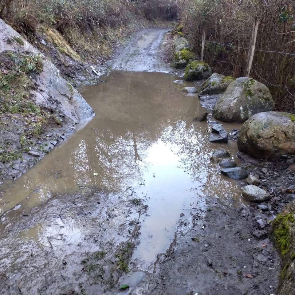 En camin de Bossòst a Les: Se i entolhaue era aigua e aquerò dificultaue eth pas des pedanhs. Era aigua a estat canalizada entà evitar era inondacion dera zòna afectada.