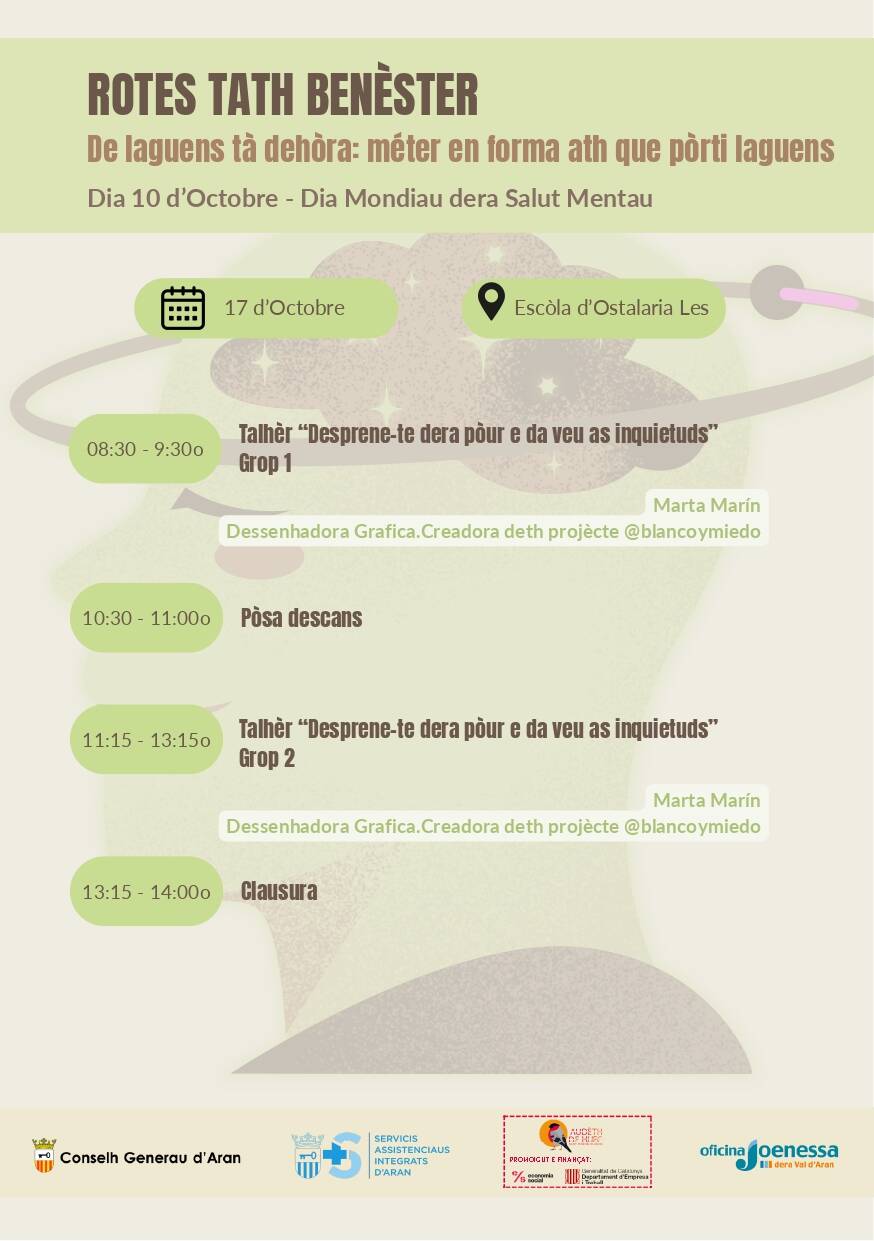 D’ençà d’Aran Salut aué volem commemorar eth Dia Mondiau dera Salut Mentau. Per aguest motiu vos presentam era Jornada “Rotes tath Benèster” qu’aurà lòc eth pròplèu 17 d’octobre ena Escòla d’Ostalaria de Les.