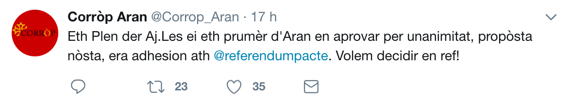Pendent eth darrèr Plen der Ajuntament de Les s'aprovèc per unanimitat (tot e qu'en aqueri moments non i ère present un des còssos, Paco Boya) era propòsta de Corròp d'adherir-se ath Pacte Nacionau peth Referendum.