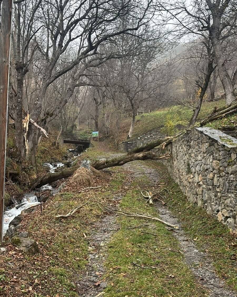 Era Brigada der Ajuntament de Naut Aran trabalhe intensament en fòrça punts de tot eth municipi entà apraiar toti es desperfèctes produsidi per aguest auragan (huracán) a on es ventades an arribat as 160km/h en parçans dera estacion d’esquí de Baqueira Beret e ath torn des 80 ena rèsta de punts de Naut Aran.