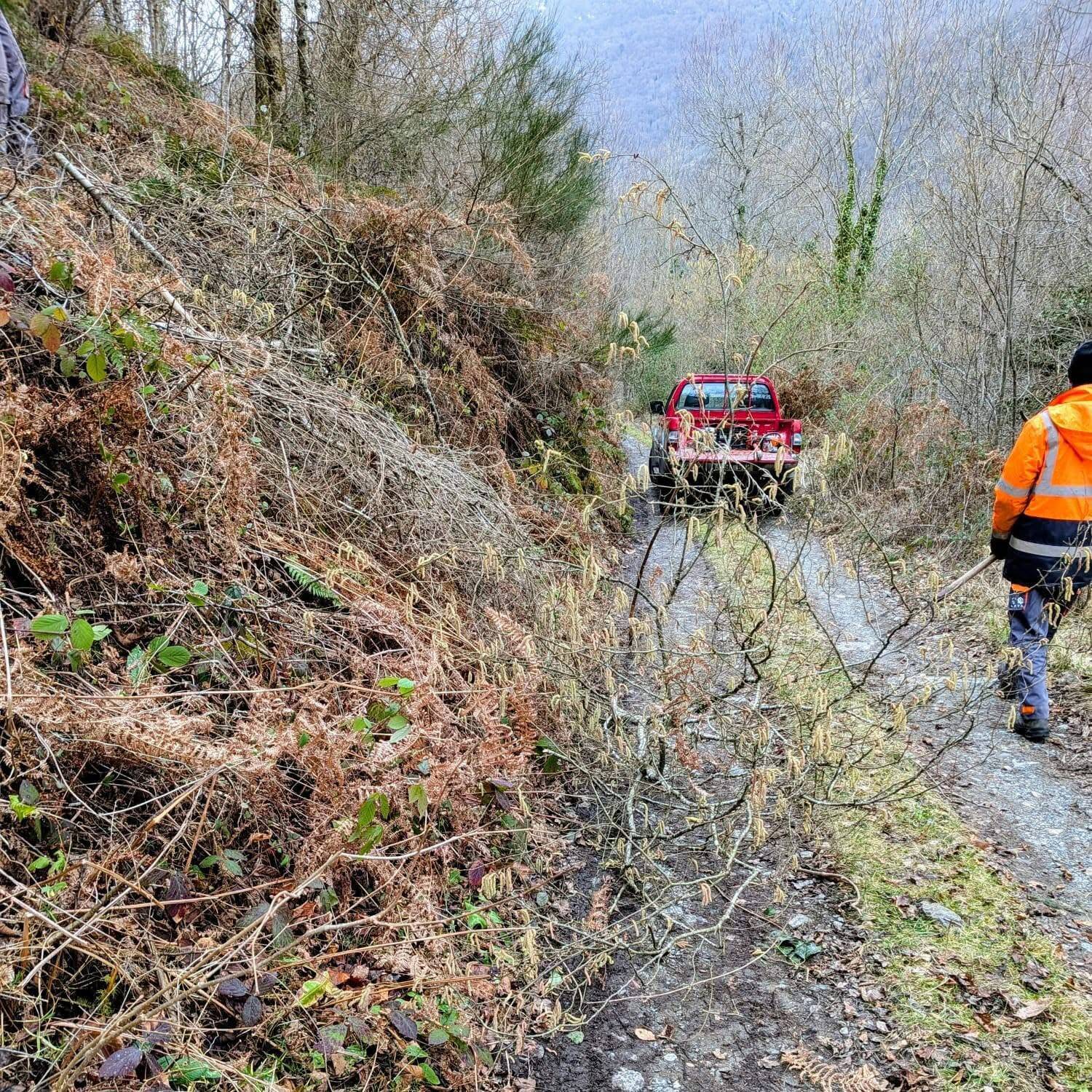 En concrèt s’an espodalhat es branques que dificultauen eth pas peth camin de Sadau, en tèrme municipau de Les, e s’a trèt eth tap dera bassa d’aigua que s’auie format en camin entre Bossòst e Les.