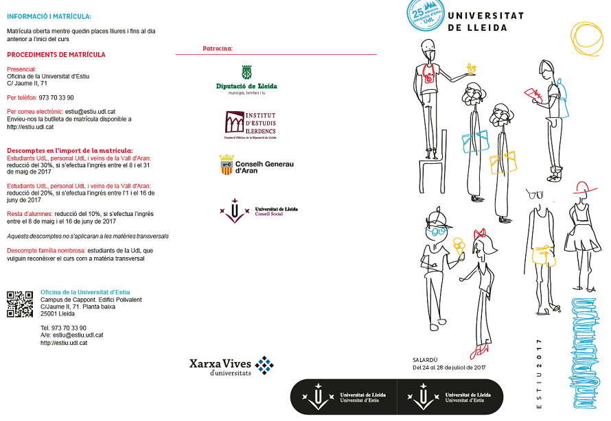 Era matricula se pòt formalizar de forma presenciau en burèu dera Universitat d’Estiu Campus de Cappont (Bastissa Polivalenta C/Jaume II, 71), atau coma picant ath telefòn 973703390 o enviant un corrèu electronic a [email protected] en tot adjuntar eth document de matricula disponibla ena sua plana web.