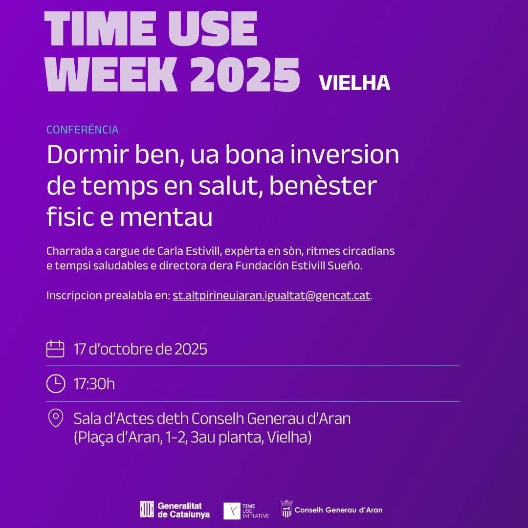 Aguest diuendres, 17 d’octobre, entàs 17.30 ores, era sala d'actes deth Conselh Generau acuelherà era conferéncia: “Dromir ben, ua bona inversion de temps en salut, benèster fisic e mentau”.