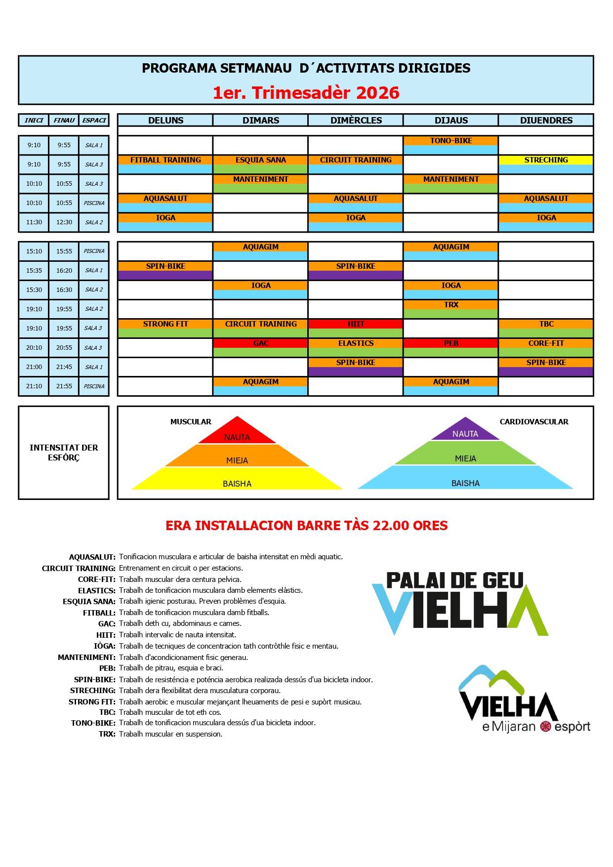 Eth Palai de Gèu de Vielha aufrís un calendari d’activitats dirigides entath 1èr trimèstre der an