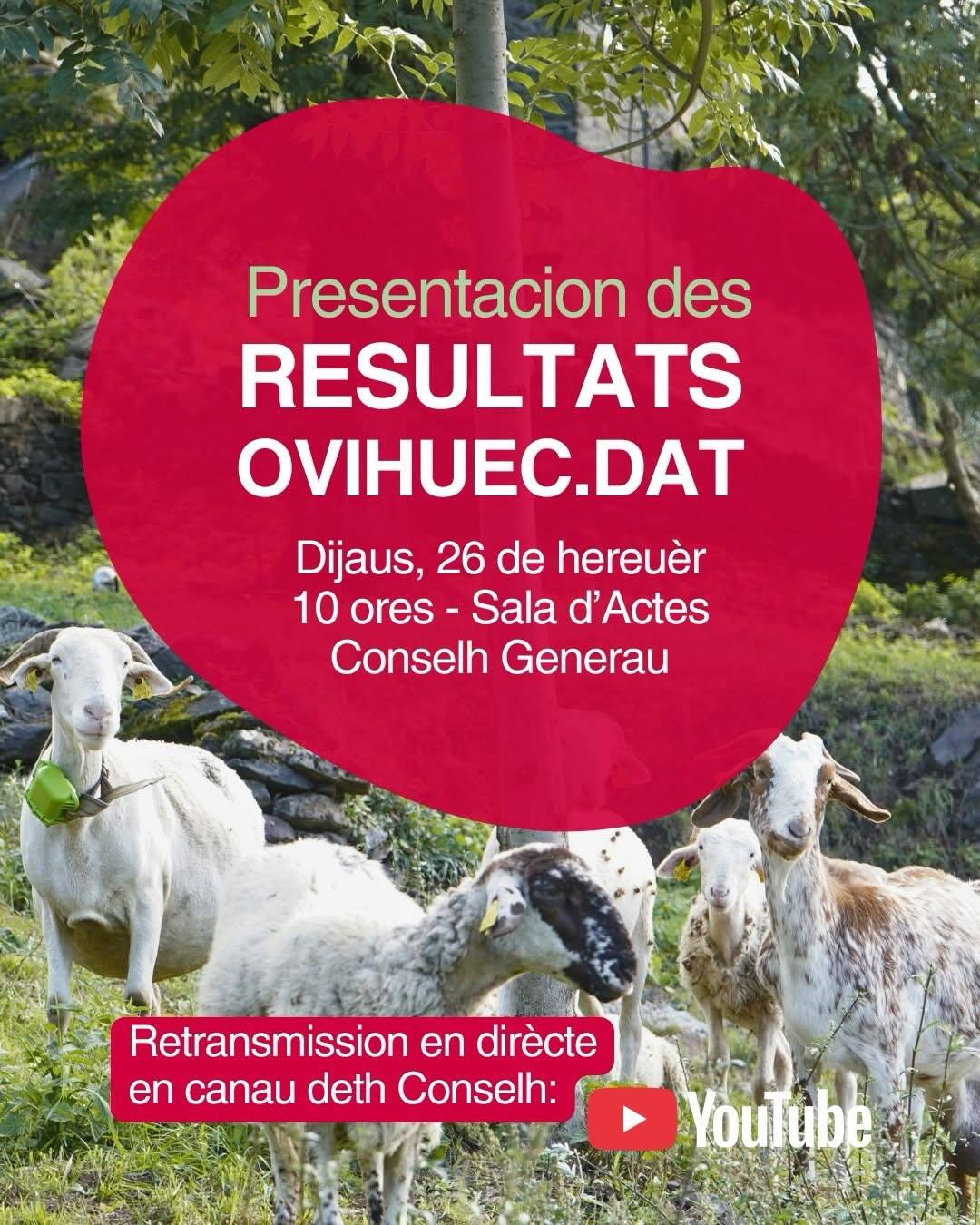 Eth dijaus entàs 10 ores, s’amiarà a tèrme era presentacion des resultats d’OVIHUEC.DAT ena sala d’actes deth Conselh Generau, dubèrta ath public e que se retransmitirà en dirècte en canau de Youtube.